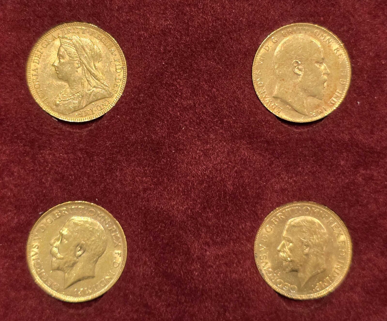 This 4‑coin typeset features the reigns of Queen Victoria, Edward VII, and George V. Each coin is struck in 22‑carat gold and represents a distinct design era from Australia’s most iconic branch mint.