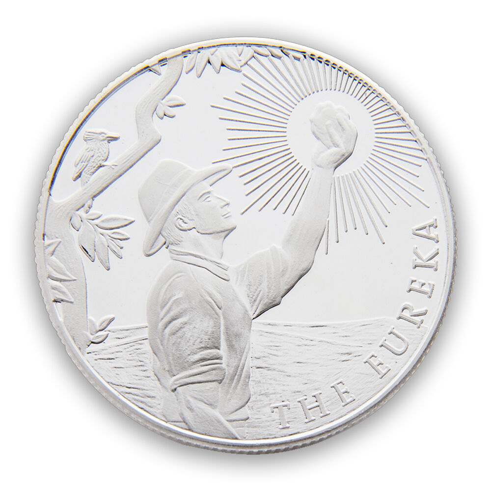 This 1oz coin depicts a Digger standing proud on his tenement, displaying his newly discovered gold nugget against a blazing Australian sun.