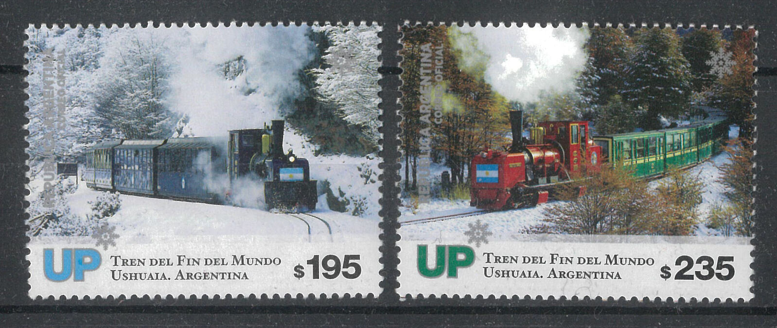 Argentina 2019 Train at the End of the World Ushuaia Short Set 2 Stamps (missing $225 stamp) MUH 5-12