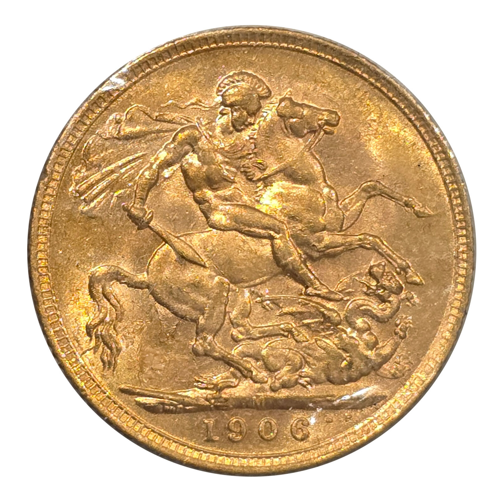 A superb Choice Uncirculated 1906‑M Sovereign, struck at the Melbourne Mint during the reign of King Edward VII. The 1906‑M issue is one of the most desirable Edward VII sovereigns, combining excellent strike quality with the classic Pistrucci St George reverse and the distinctive “M” mintmark.