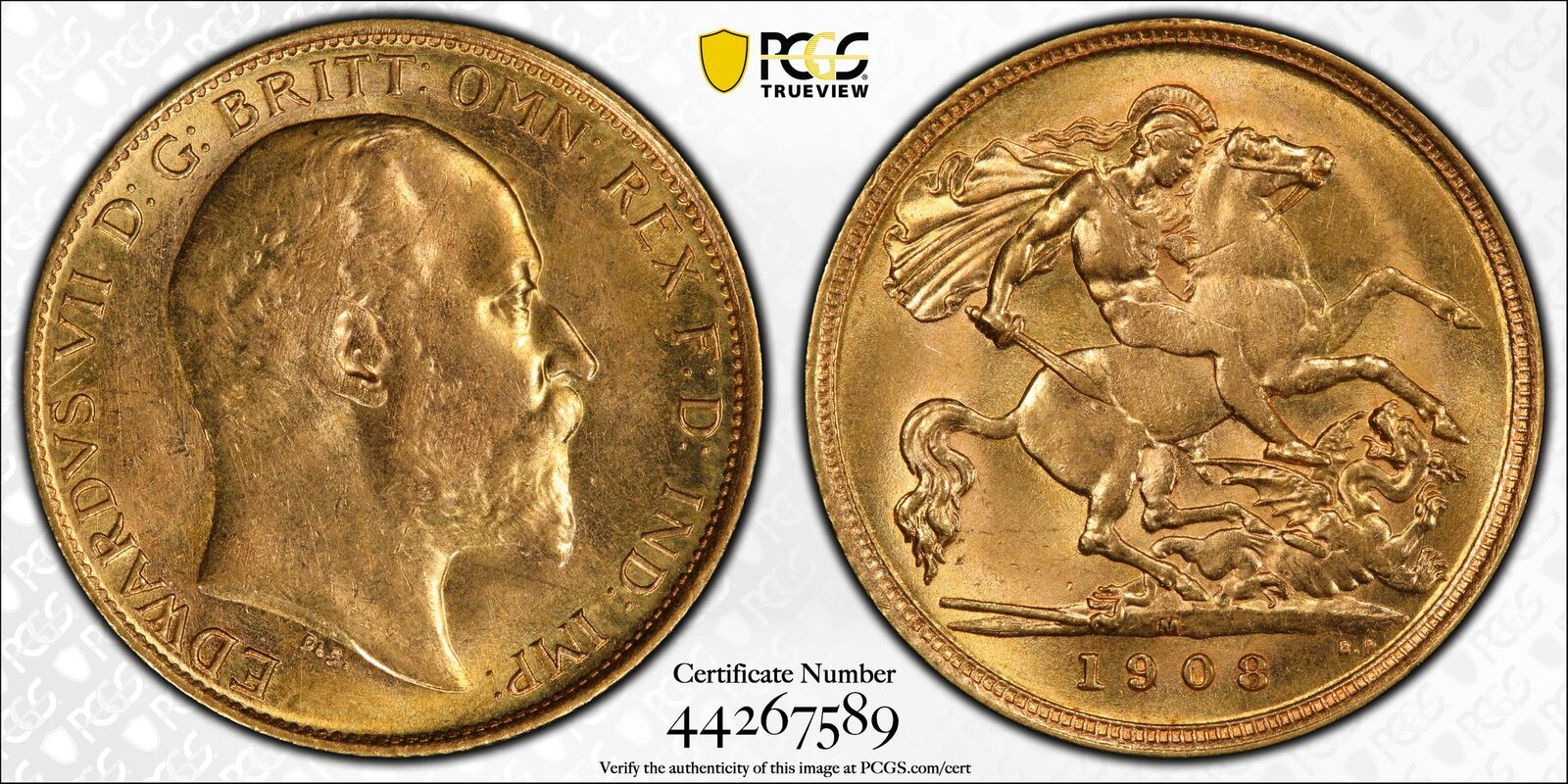 Australia 1908-M Half Sovereign Gold Coin S-3975 PCGS AU58
