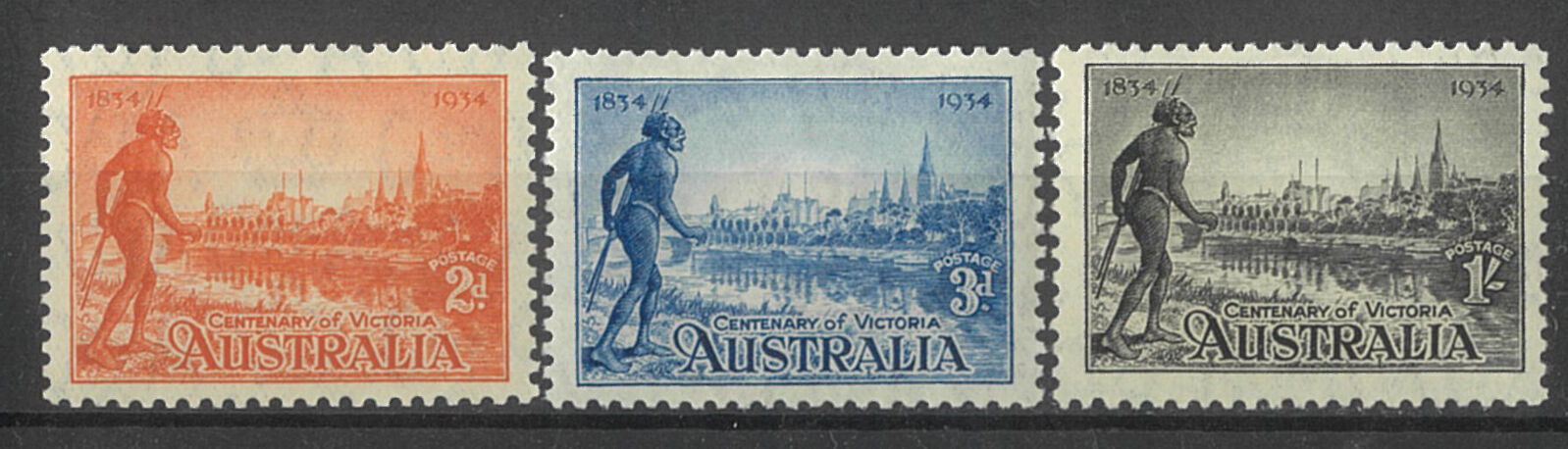 Australia 1934 Victoria Centenary p10½ Set of 3 Stamps SG147/49 MUH #AUBK