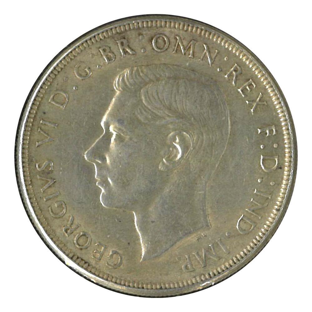 The 1938 Crown is a one-year-only issue that stands out for its bold design and substantial silver content. Struck to commemorate the coronation of King George VI, this coin features: