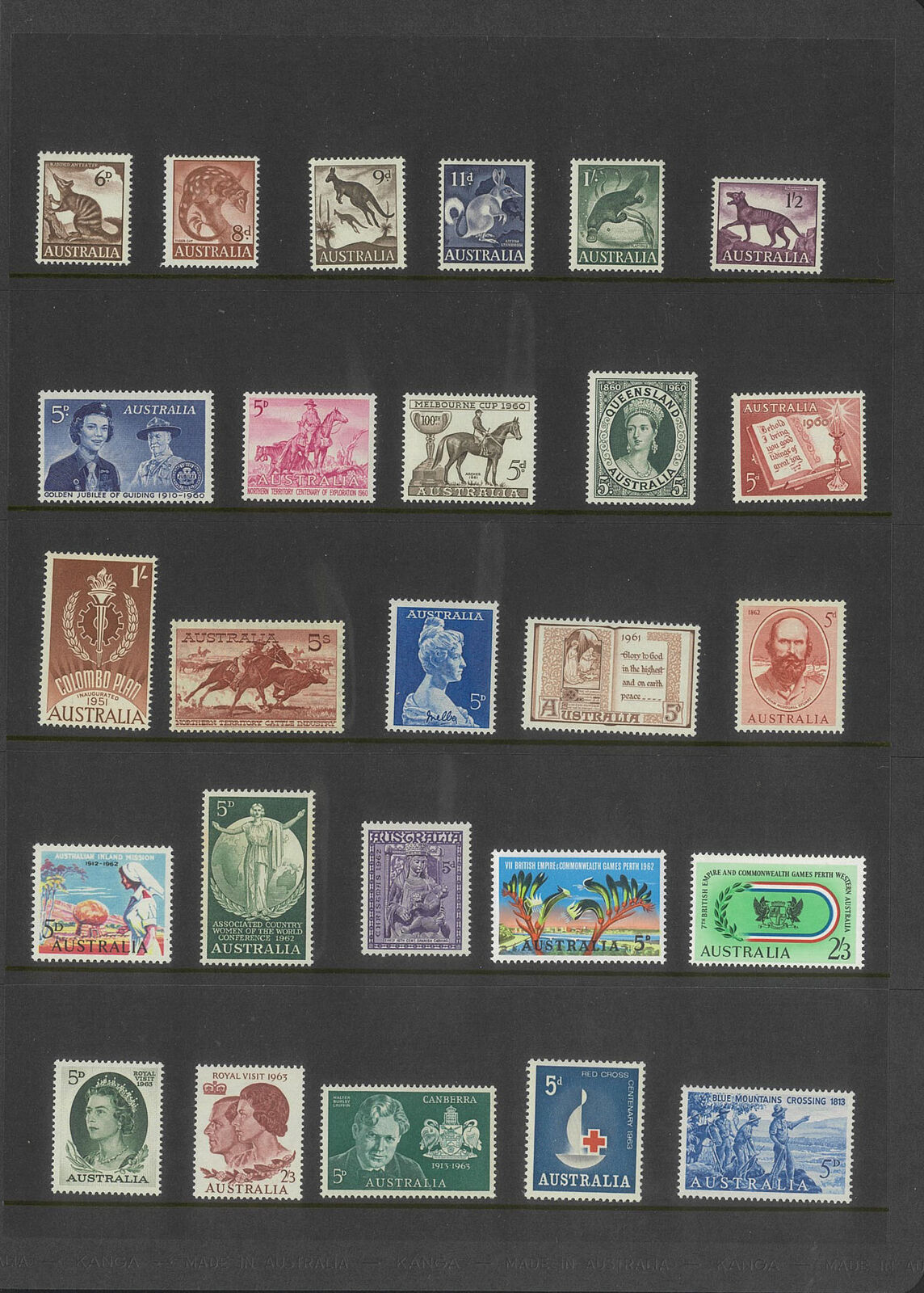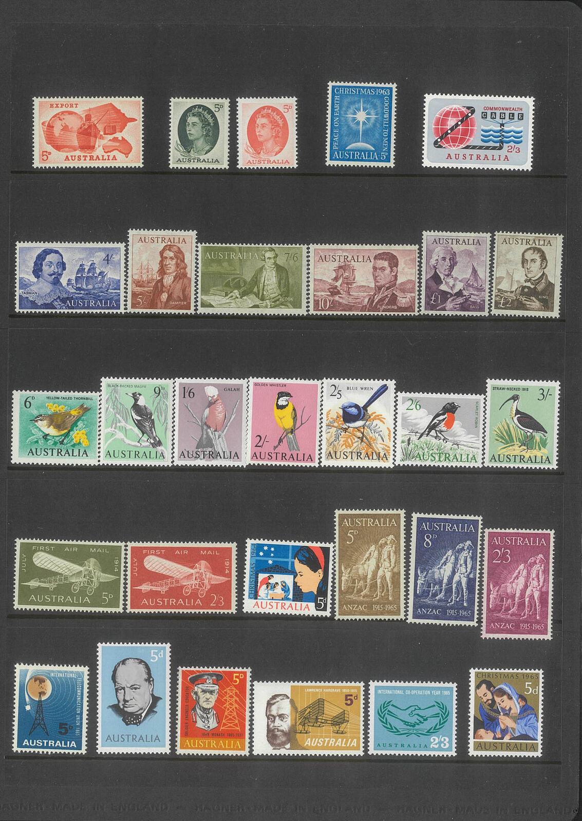 Australia 1953-65 QEII Collection of 122 Stamps in Sherwood Folder All Fine MUH, including Navigators set of 6 stamps