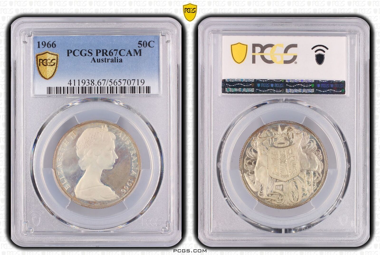 Australia 1966 Round 50c Silver Proof PCGS PR67CAM