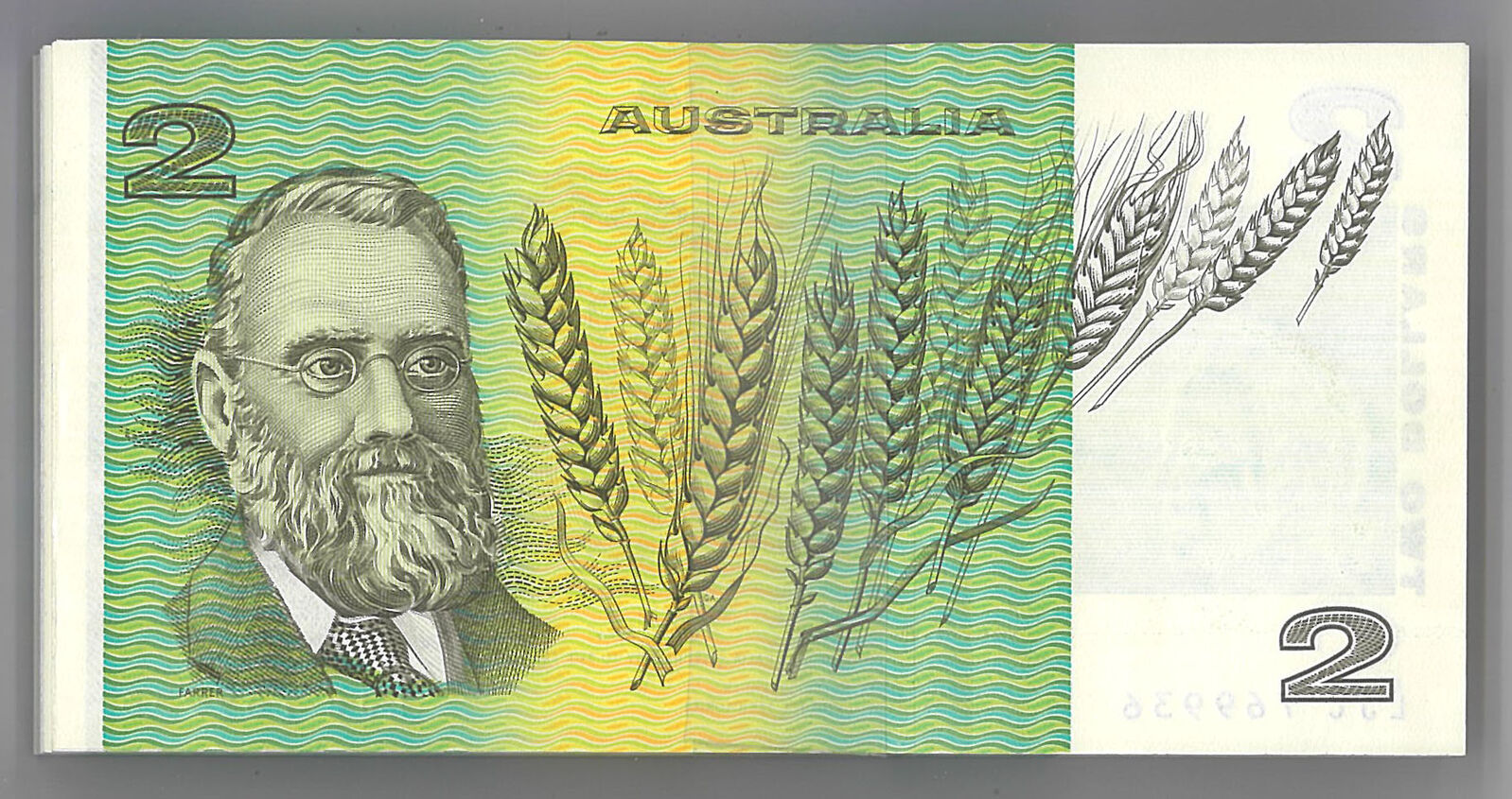 Australia 1985 Bundle of 100 $2 Banknote Johnston/Fraser R89 UNC