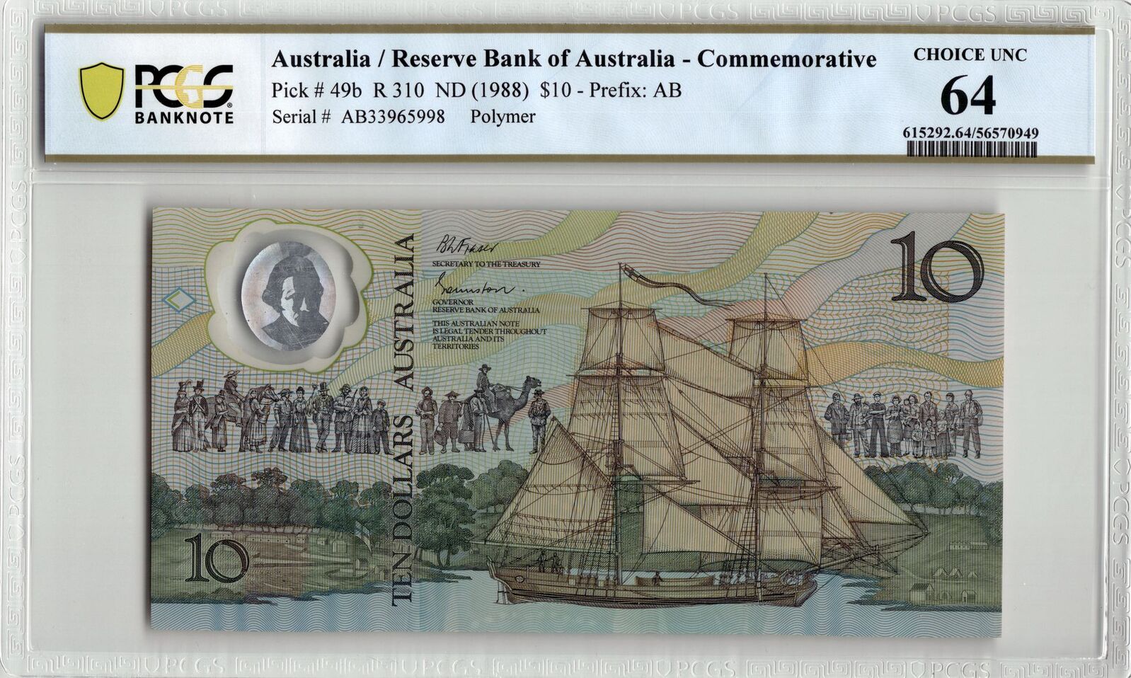 Australia 1988 Aboriginal Polymer $10 Prefix AB R310 PCGS Choice UNC 64