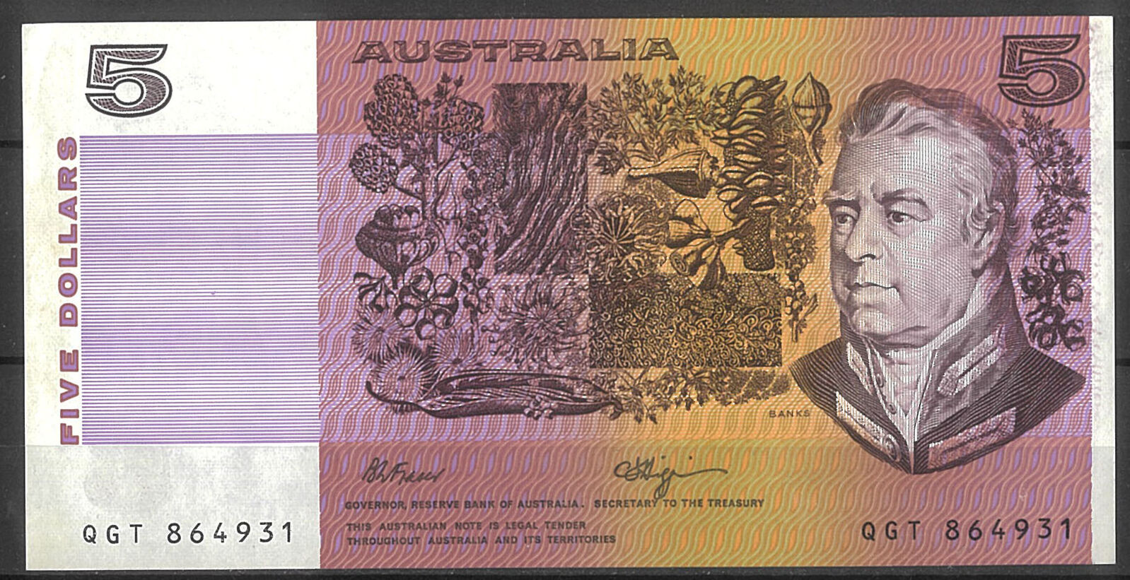Australia 1990 $5 Banknote Fraser/Higgins R212 gVF#3-70