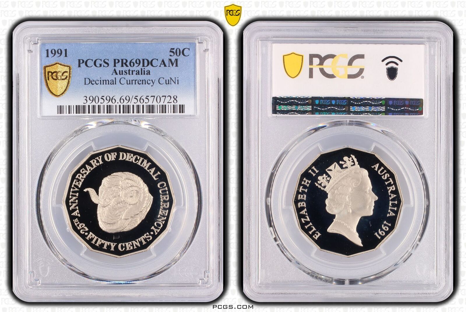 Australia 1991 Decimal Currency Ram's Head 50c Proof Coin PCGS PR69DCAM