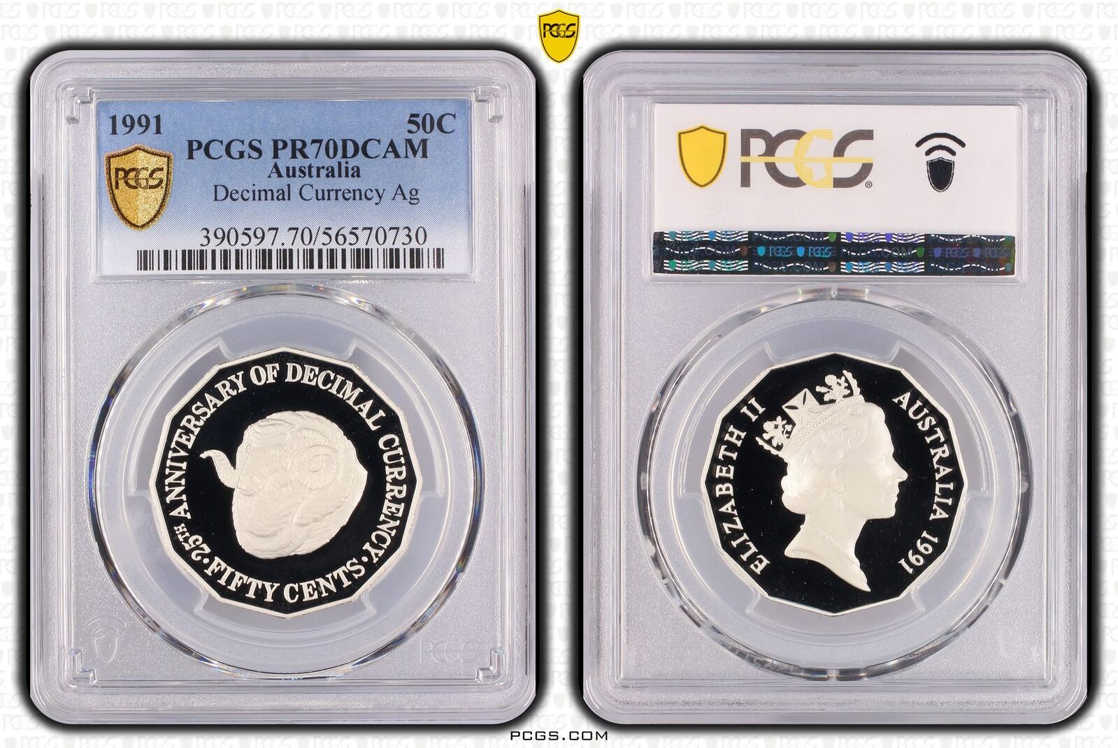 Australia 1991 Decimal Currency Ram's Head 50c Proof Coin PCGS PR70DCAM