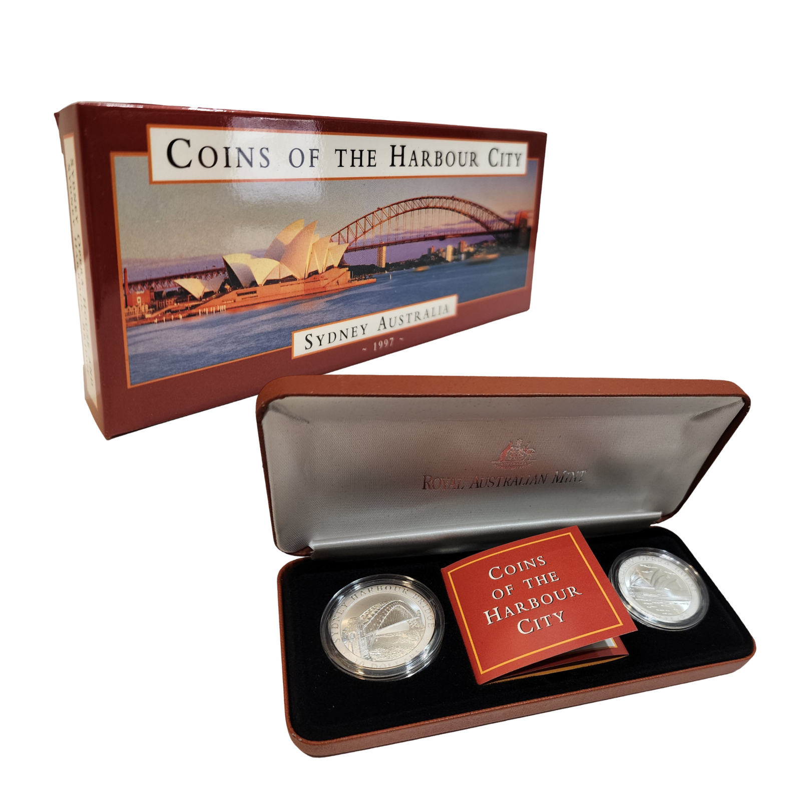 In 1997, the Royal Australian Mint in Canberra released a Coins of the Harbour City Dual Ten Dollar Set. This is the first in an Australian Landmarks series. The two coins in the set are: