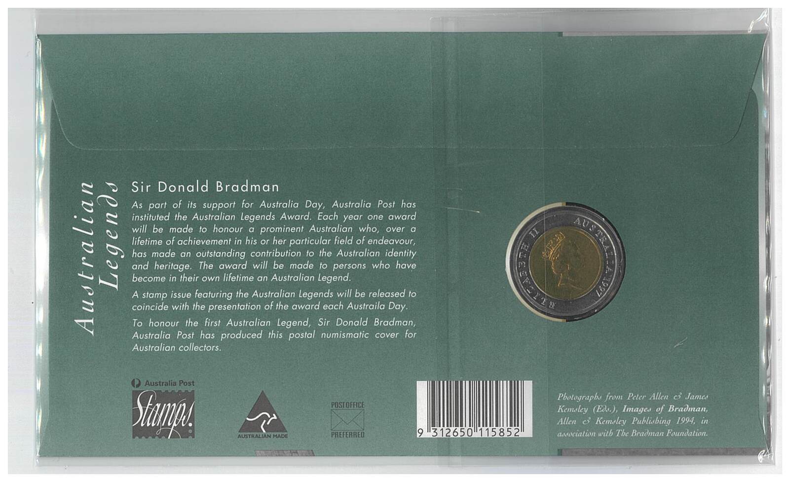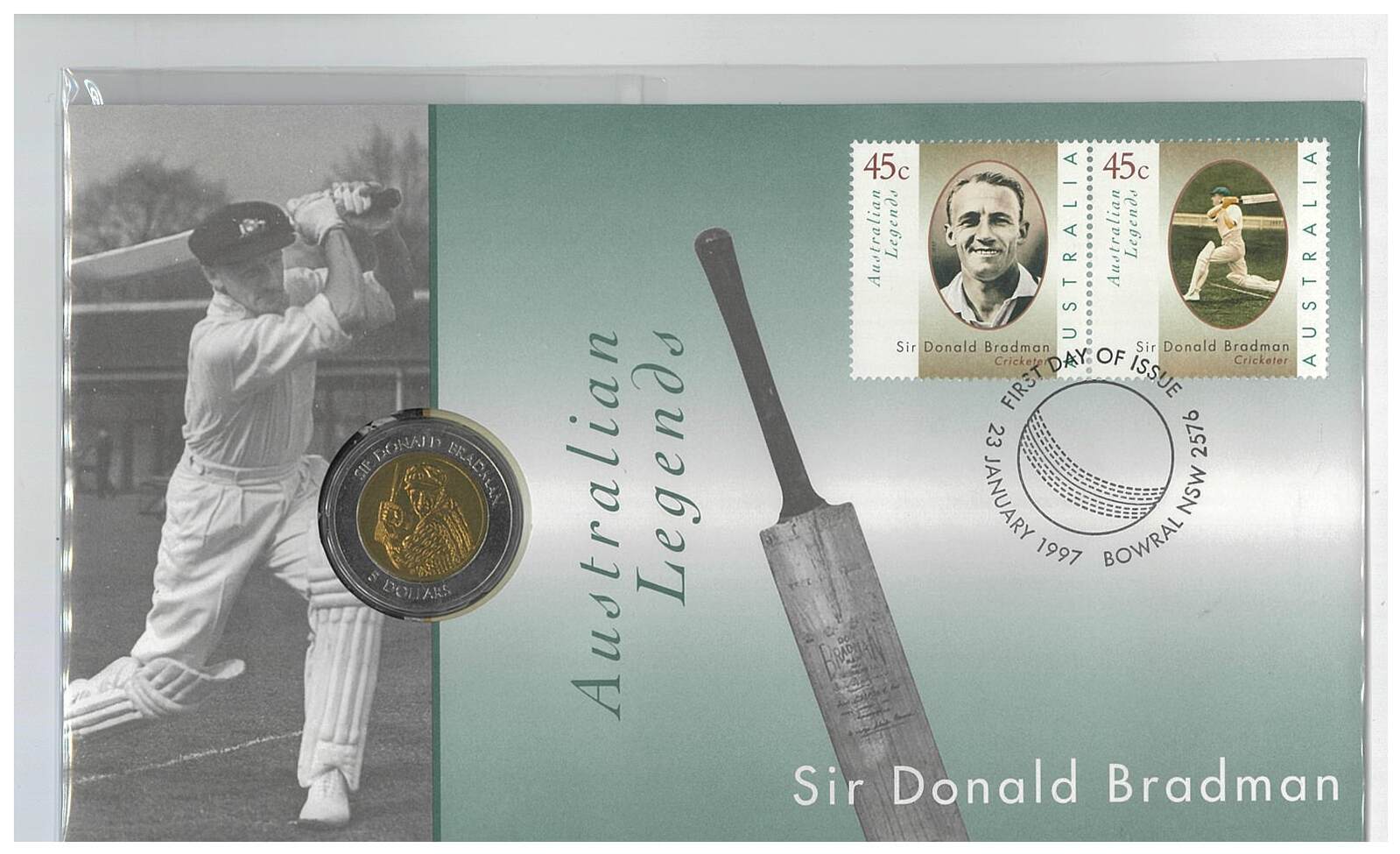 Australia 1997 Sir Donald Bradman Australian Legends Stamps & $5 Coin PNC