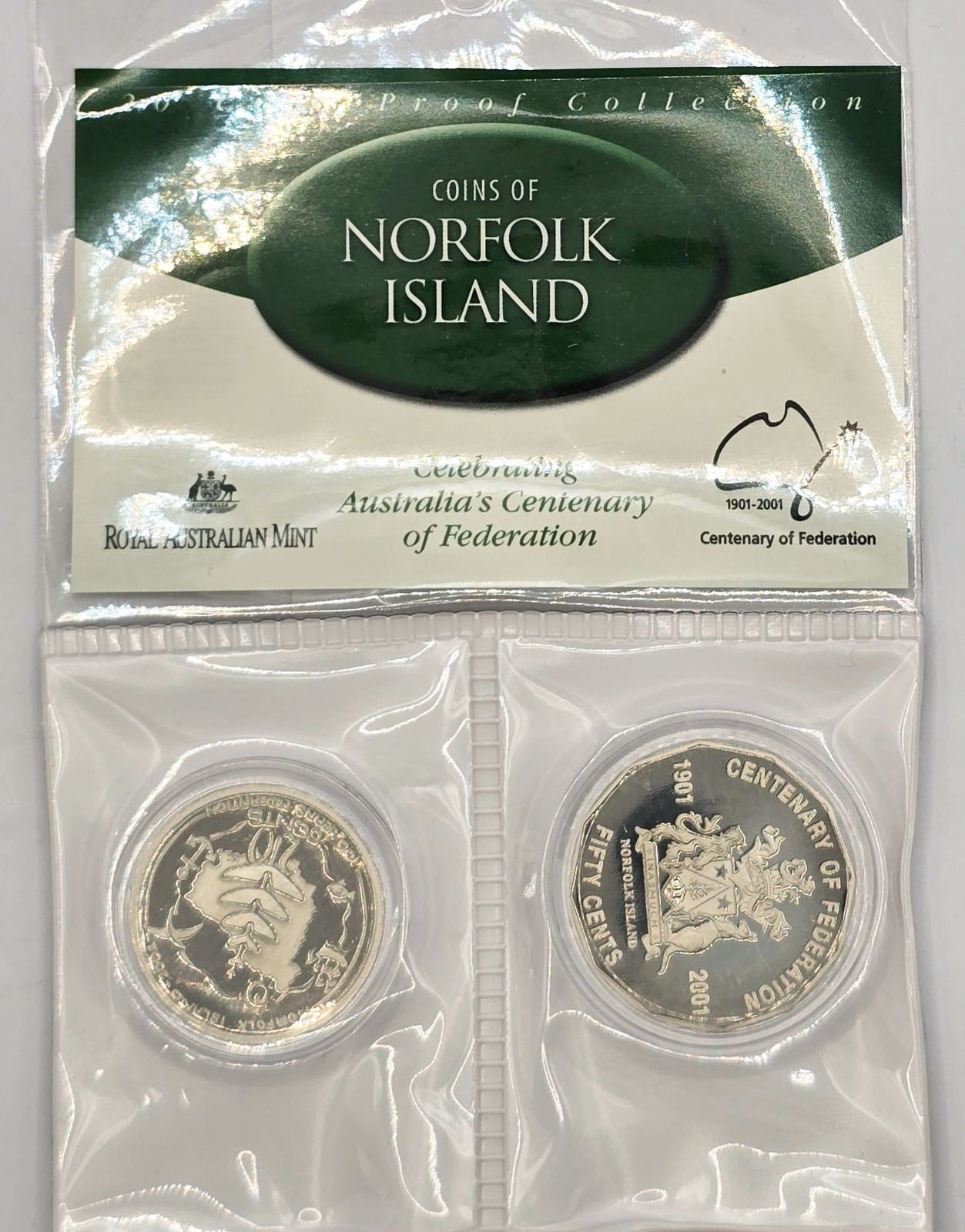 Australia 2001 Centenary of Federation Norfolk Isl. 20c & 50c Proof Coins