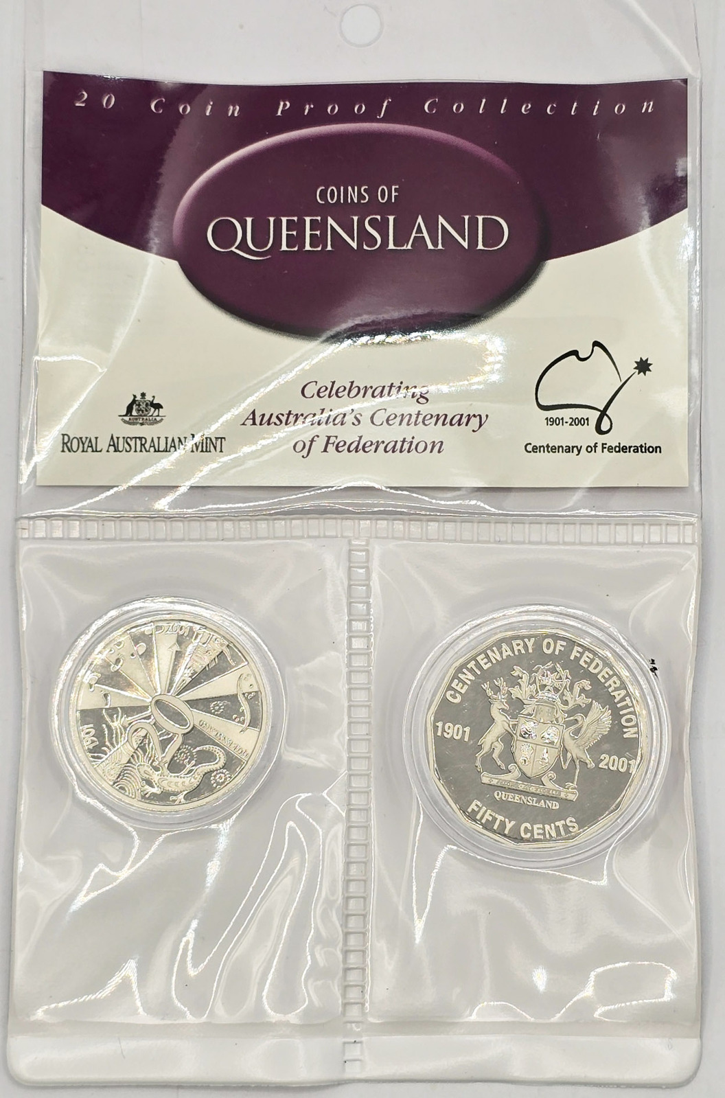 Australia 2001 Centenary of Federation QLD 20c & 50c Proof Coins
