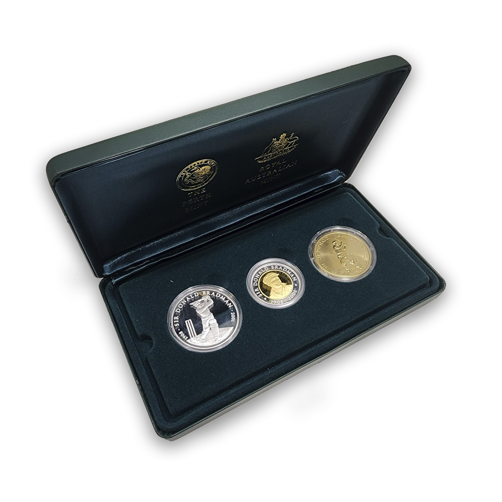 Australia 2001 Sir Donald Bradman Commemorative Gold Silver Bornze 3-Coin Set