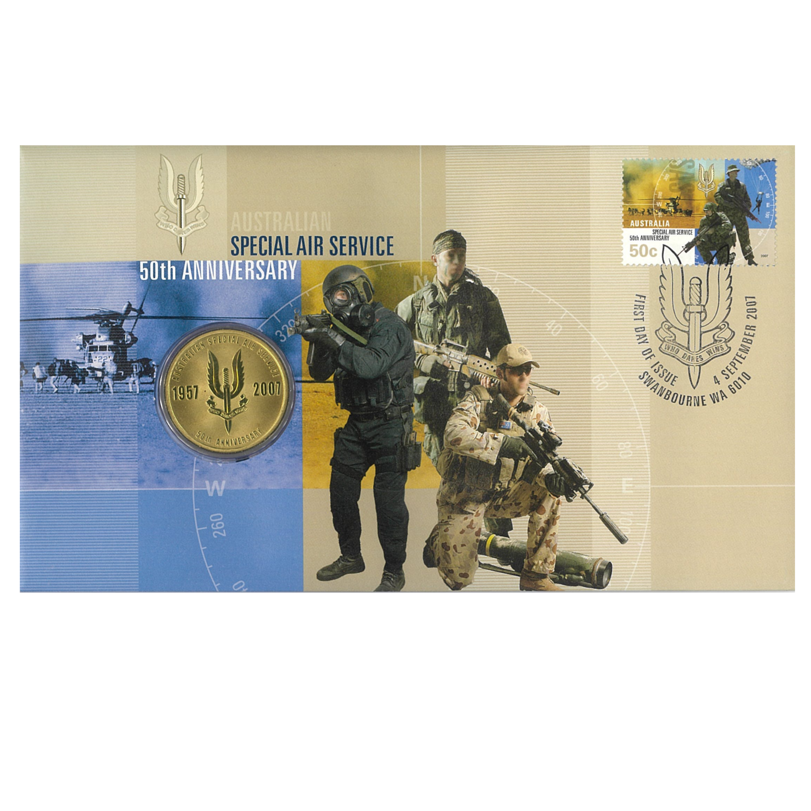 Australia 2007 Australian Special Air Service 50th Anniversary Stamp & $1 UNC Coin Cover - PNC