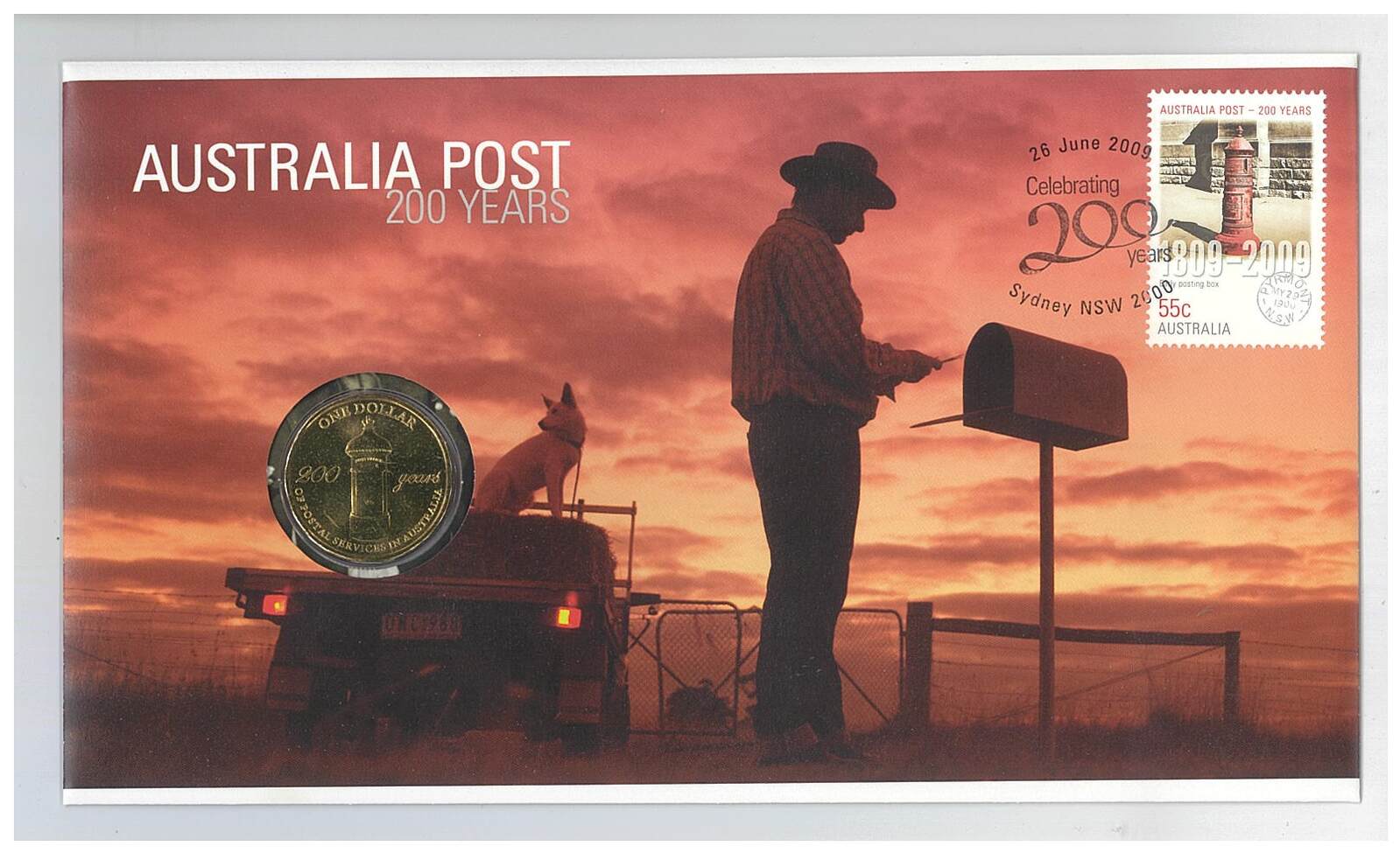 Australia 2009 200 Years Australia Post - Postbox Stamp & $1 Coin PNC