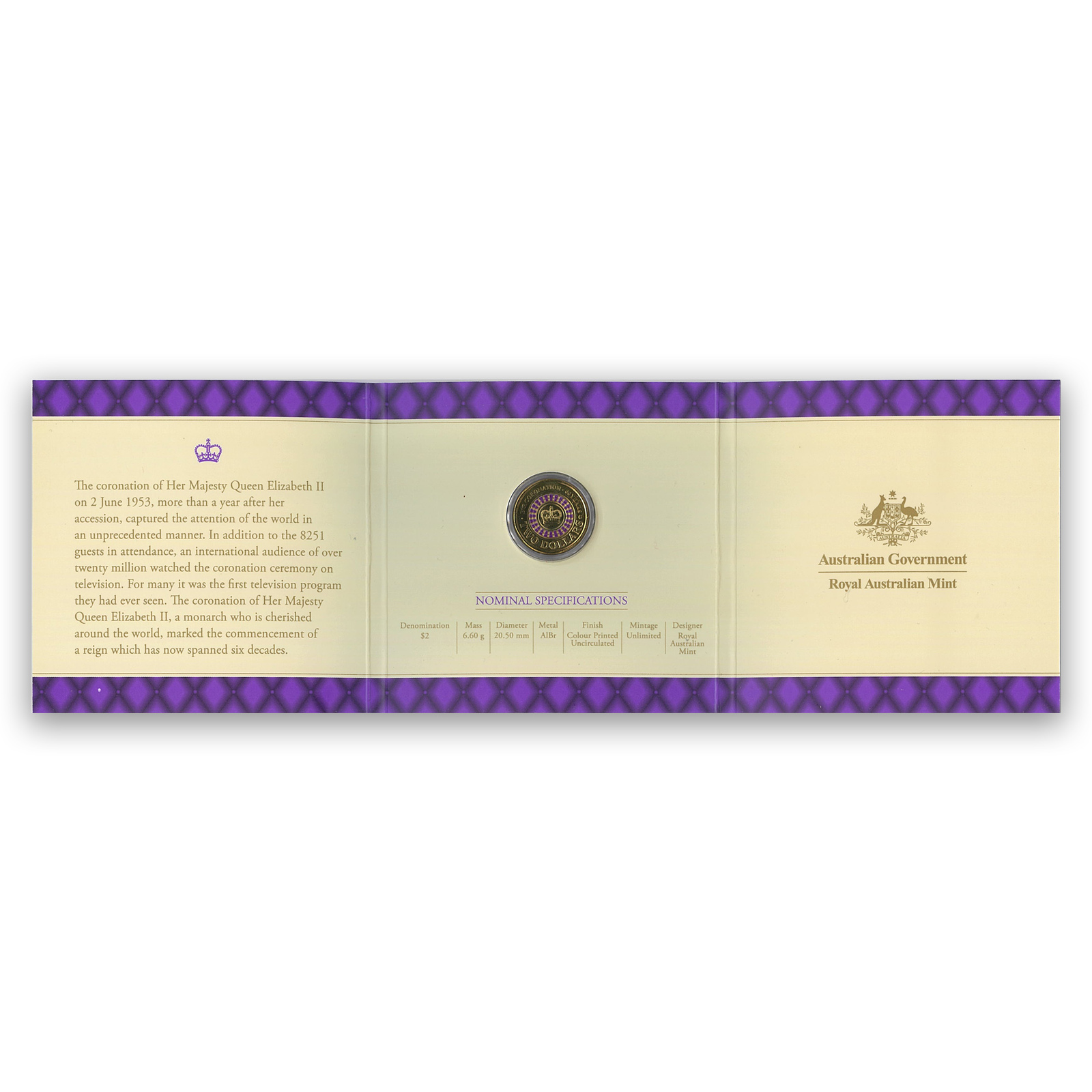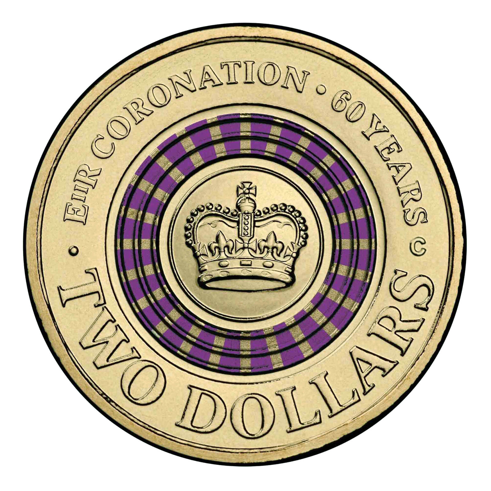 Australia 2013 Coronation of Queen Elizabeth II 60th Anniv. $2 Coloured 'C' Mintmark UNC Coin