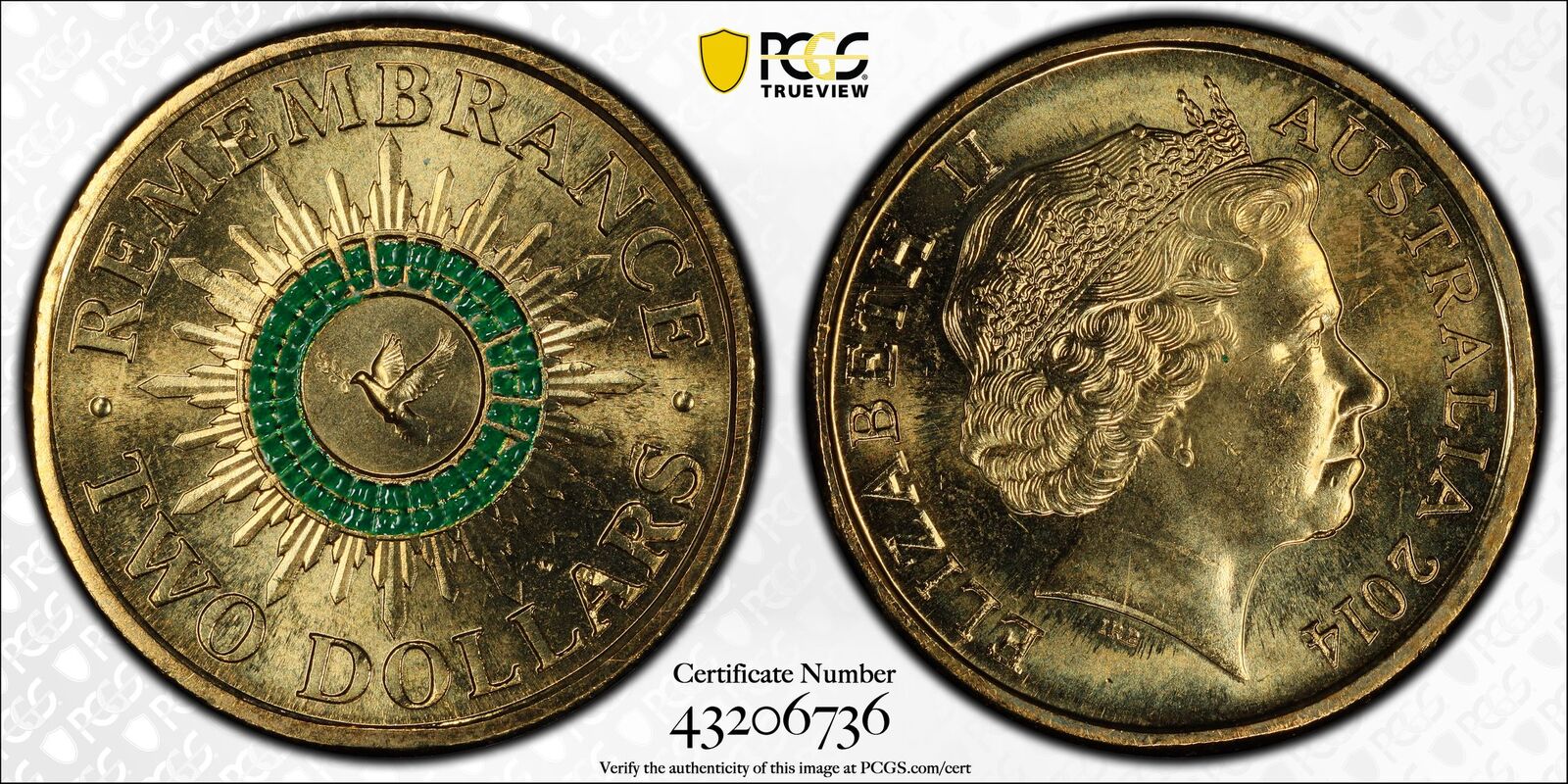 Australia 2014 Remembrance $2 Coloured Coin PCGS MS65+