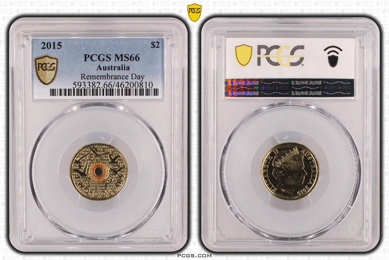 Australia 2015 Remembrance Day $2 Coloured Coin PCGS MS66