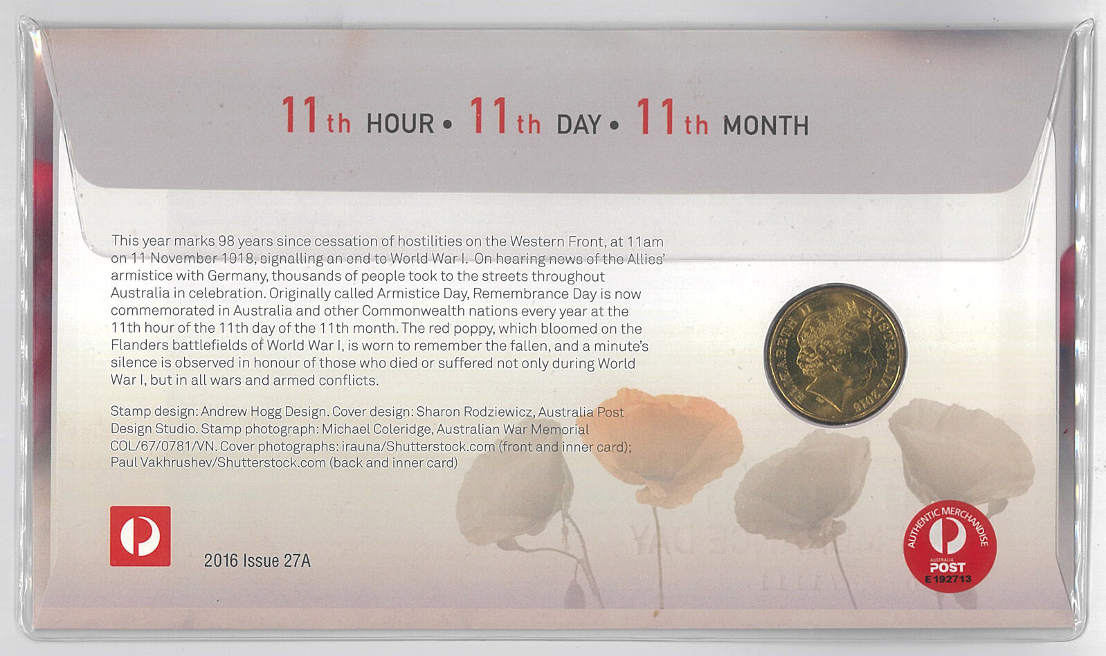 Australia 2016 Remembrance Day with 100 Years of ANZAC $1 Coin - PNC