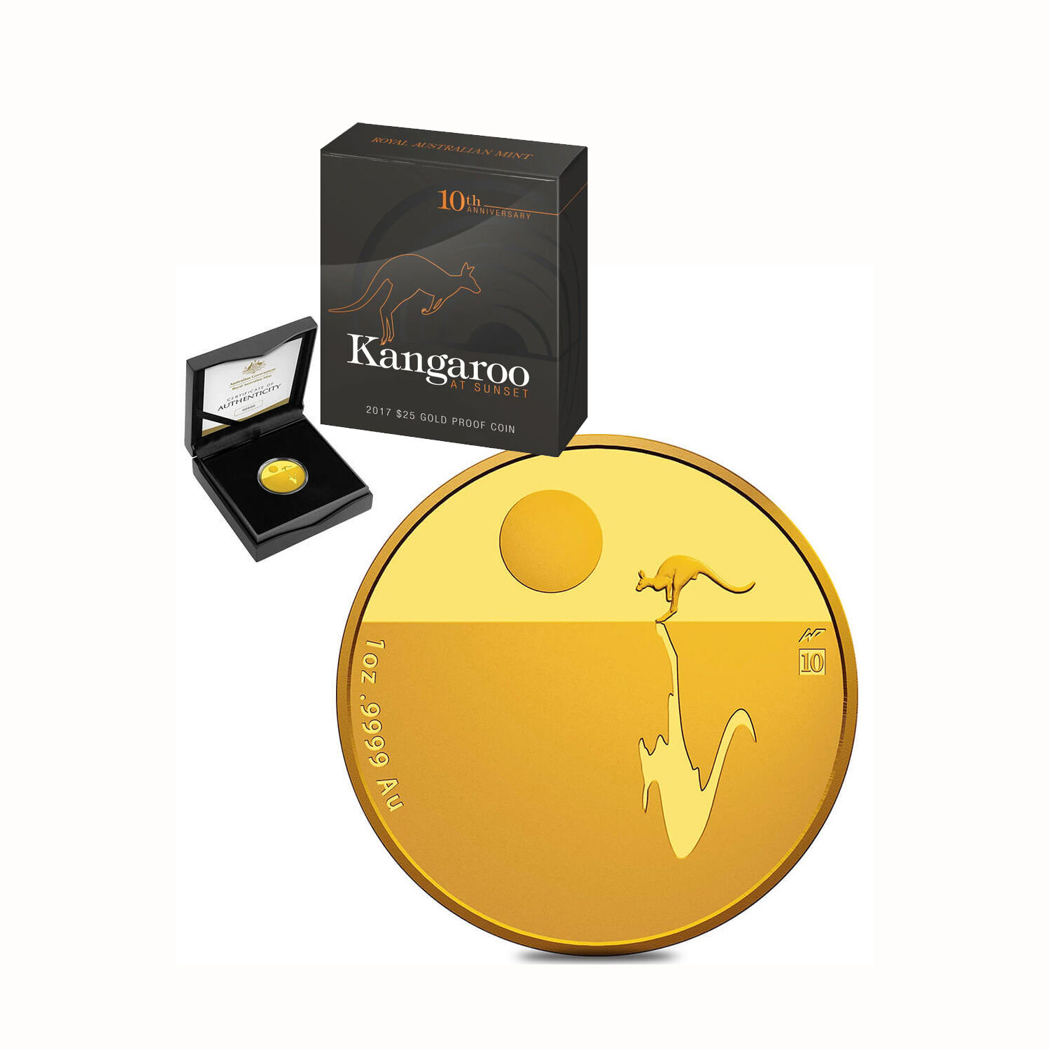 The simple yet striking reverse design of this coin features a lone kangaroo crossing the red soil plains against a setting sun capturing the raw beauty and isolation of the great Australian outback.