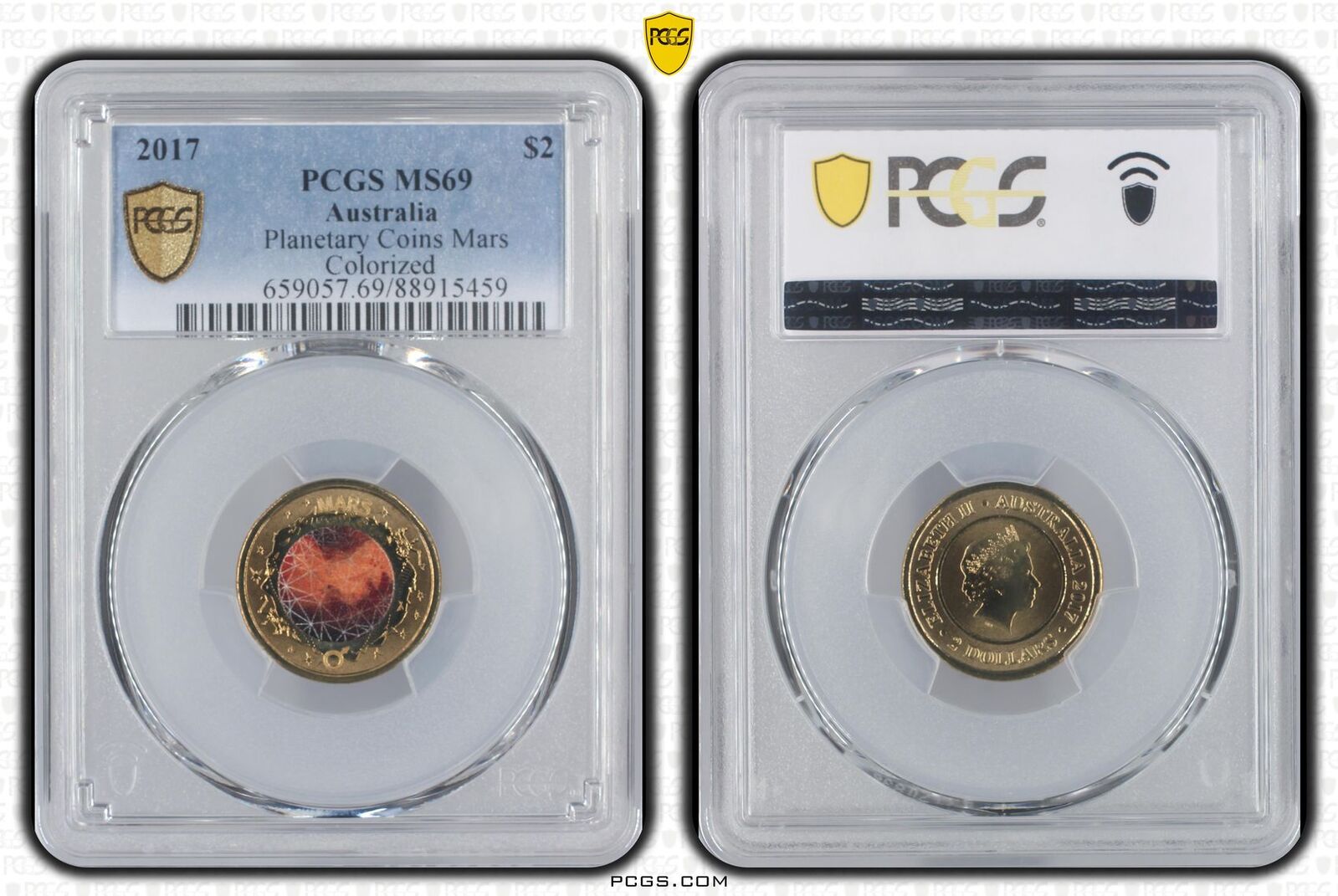 Australia 2017 Planet Mars $2 Coin – PCGS MS69 | Coloured Astronomy Series