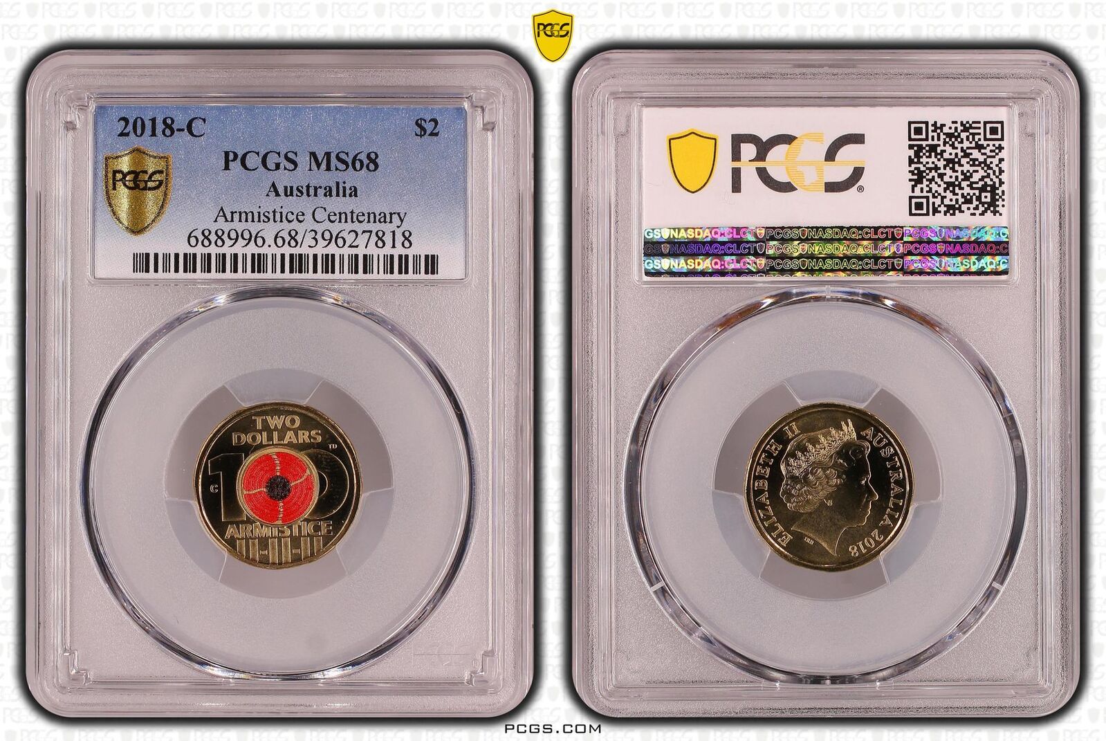 Australia 2018 Armistice Centenary $2 Coloured Coin "C" mmk PCGS MS68