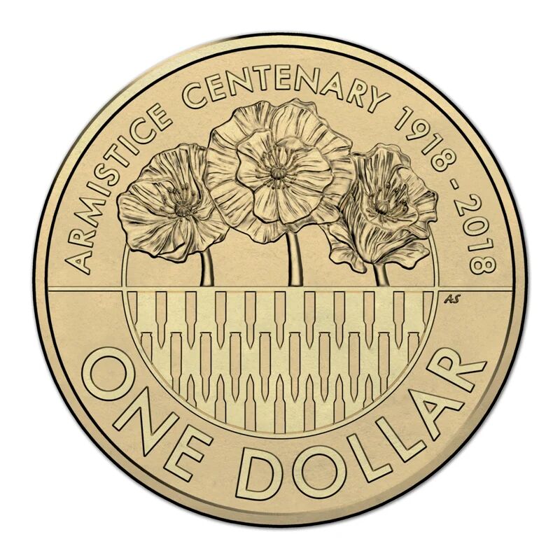 To commemorate the 2018 centenary of the armistice between the Allies and Germany that essentially brought an end to the First World War the Royal Australian Mint have released the annual six coin uncirculated year set with a specially designed one dollar coin.