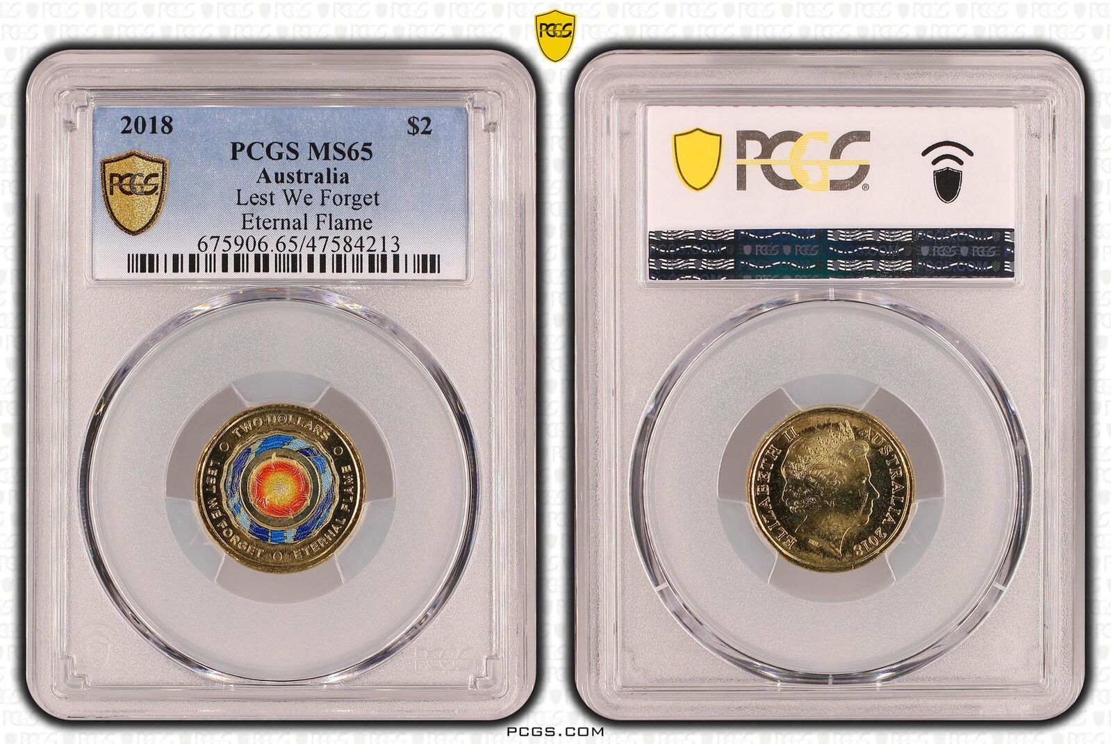 Australia 2018 Lest We Forget Eternal Flame $2 Coloured Coin PCGS MS65