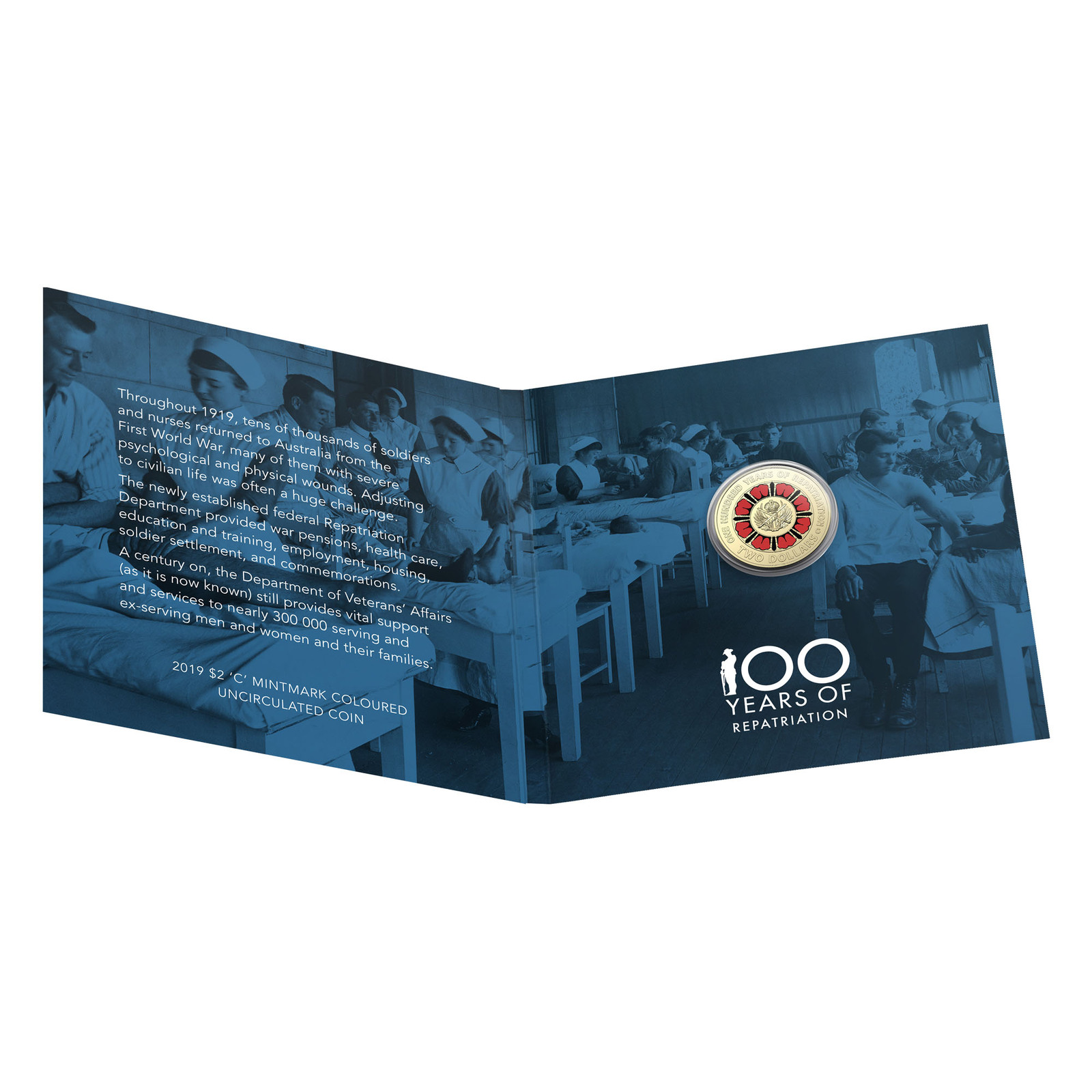 Australia 2019 100 Years of Repatriation $2 Coloured Coin 'C' mmk UNC