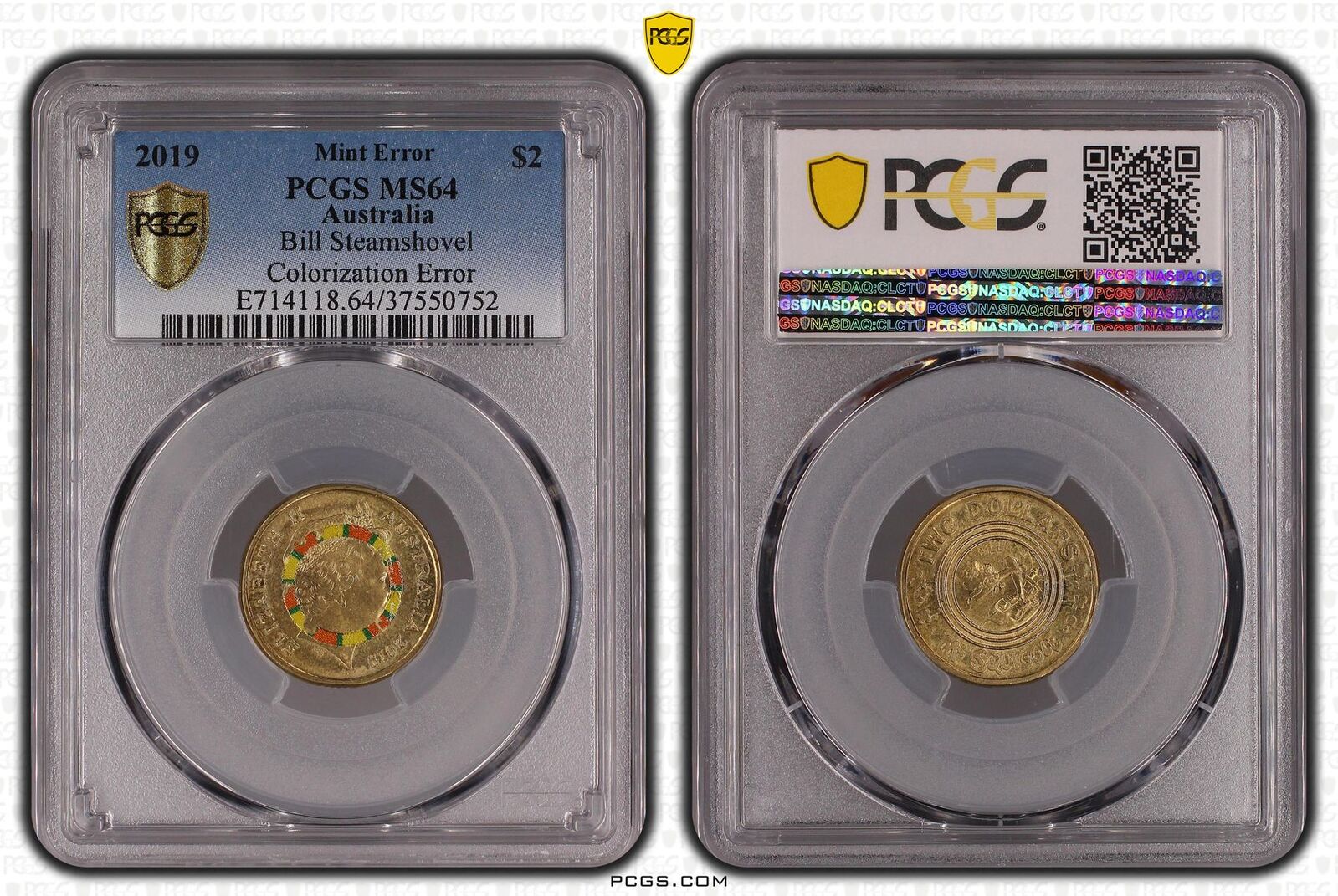 Australia 2019 Bulleyes Error $2 Coin Mr. Squiggle Bill Steamshovel PCGS MS64