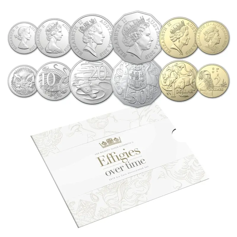 Australian coins traditionally feature a portrait or 'effigy' of the reigning monarch on their obverse. Since the coronation of Her Majesty Queen Elizabeth II in 1953 there have been six individual effigies on Australia's coins.