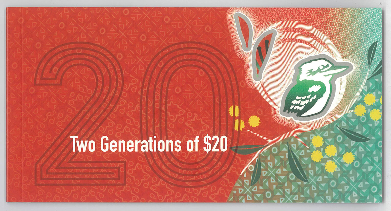The commemorative folder contains one uncirculated $20 banknote from the new polymer series and one uncirculated $20 banknote from the first polymer series, both housed in clear windows. The folder depicts artwork used on the new polymer banknote.
