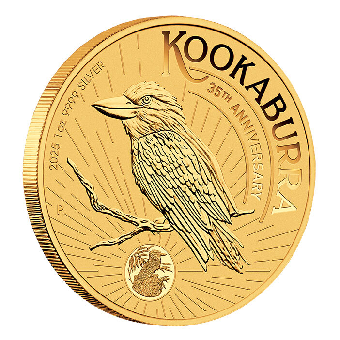 35th Anniversary of the Australian Kookaburra 2025 1oz Silver Gold-Plated Coin in Card