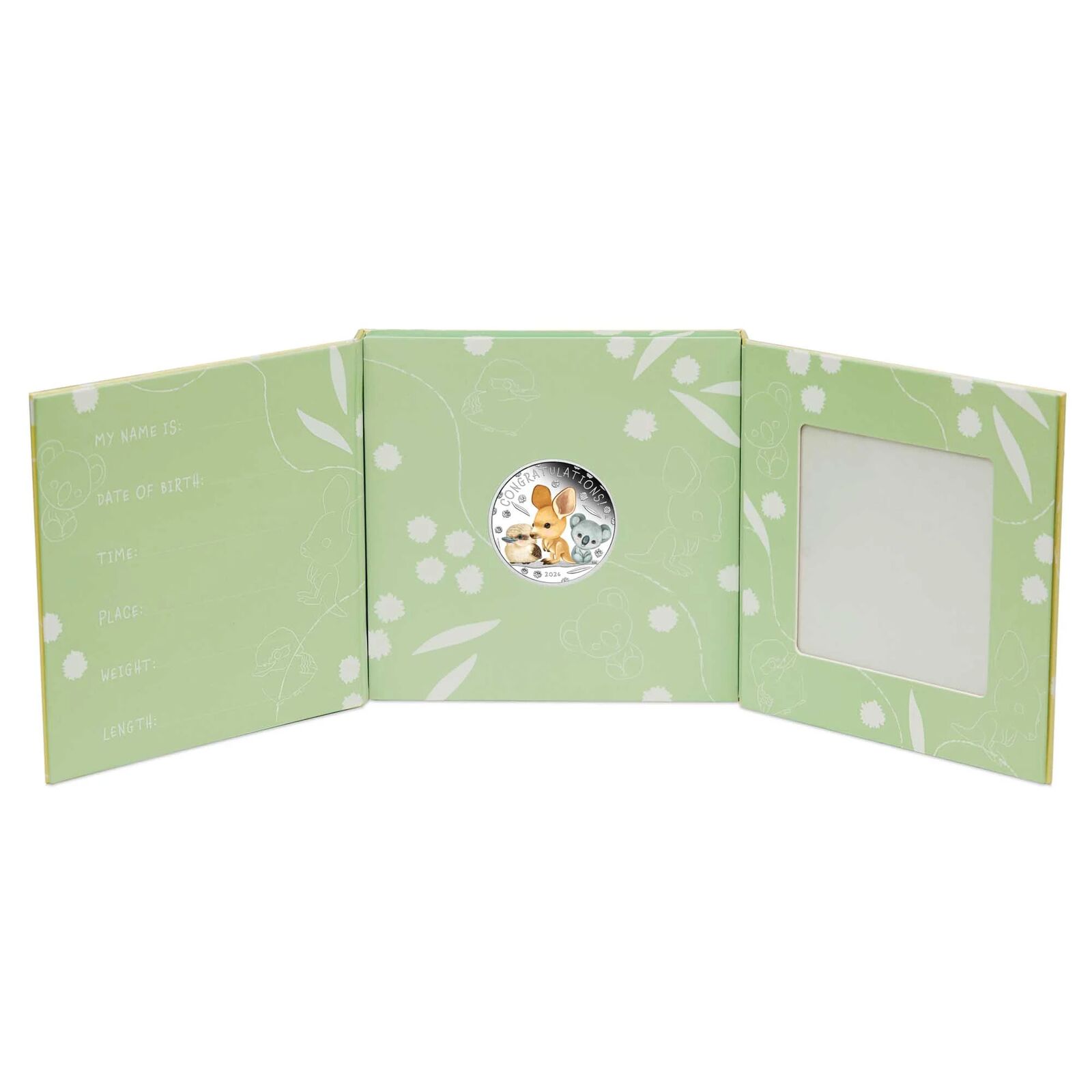 The perfect gift to welcome newborn babies, this 1/2oz silver proof coin depicts delightful, coloured imagery of Australia’s cutest baby animals.