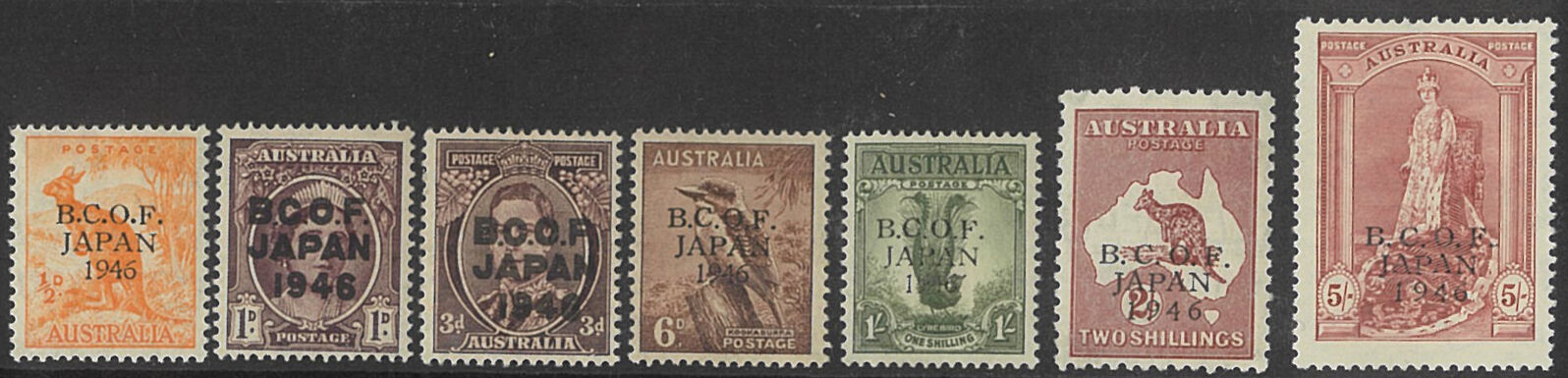 Australia B.C.O.F. 1946-47 Opt Set/7 Stamps to 5/- Thick Paper SG J1/7 MUH #AUBK