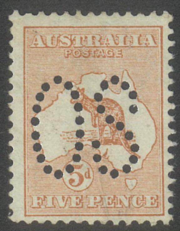 Australia Kangaroo Stamp 1st WMK 5d Pale Chestnut Perf Large OS SG O7 MLH #AUBK