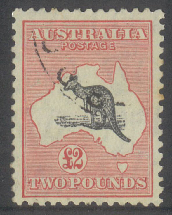 Australia Kangaroo Stamp CofA WMK £2 Black & Rose SG138 Fine Used (one toned perf)