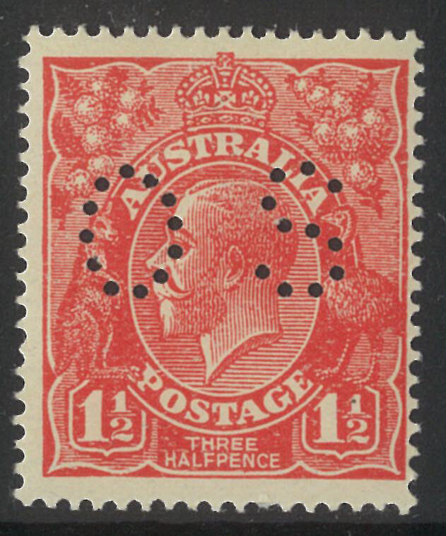 Australia KGV Stamp No WMK 1½d Scarlet Perf OS SG O87 MUH light bend
