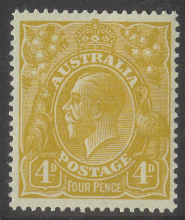 Australia KGV Stamp Single Crown WMK 4d Olive-Yellow SG80 MUH #AUBK