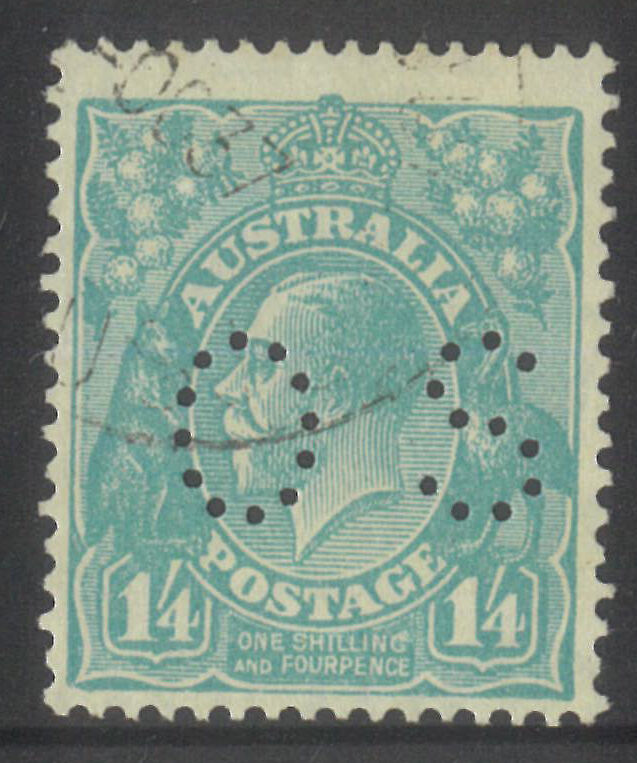 Australia KGV Stamp Small Mult WMK p13½x12½ 1/4 Turquoise Perf OS SG111 Fine Used #AUBK