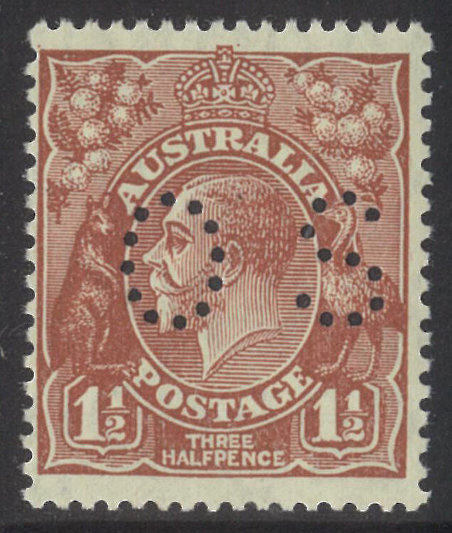 Australia KGV Stamp Small Mult WMK p13½x12½ 1½d Red-Brown Perf OS SG O102 MUH #AUBK