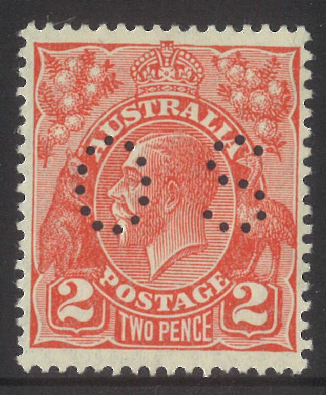 Australia KGV Stamp Small Mult WMK p13½x12½ 2d Scarlet Die III Perf OS SG O104a MUH #AUBK