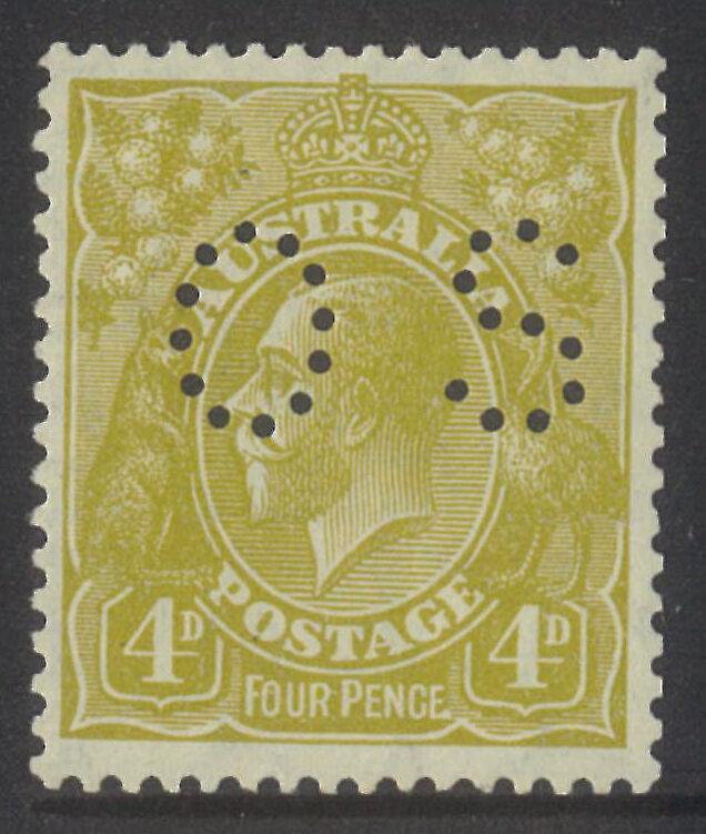 Australia KGV Stamp Small Mult WMK p13½x12½ 4d Yellow-Olive Perf OS SG O108 MUH #AUBK
