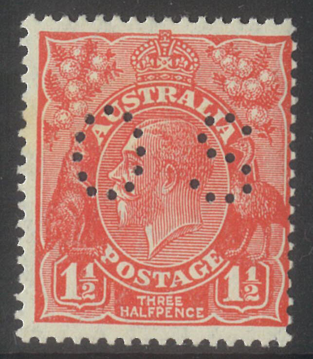 Australia KGV Stamp Small Mult WMK p14 1½d Scarlet Perf OS SG O90 MLH #AUBK