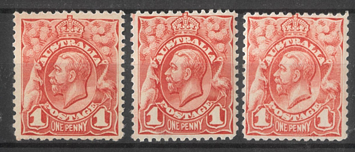 Australia KGV Stamps 1913 Engraved 1d Red Vertical Mesh, Horiz Mesh & 1d Pale Red SG17/17a MUH (in AUBK)