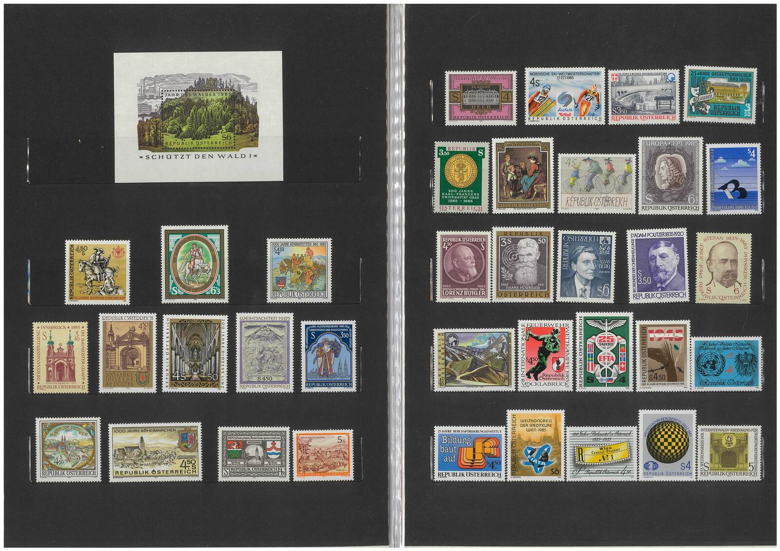 Austria 1985 Complete Year Set Collection of 36 Stamps & 1 Mini Sheet in folder pack MUH