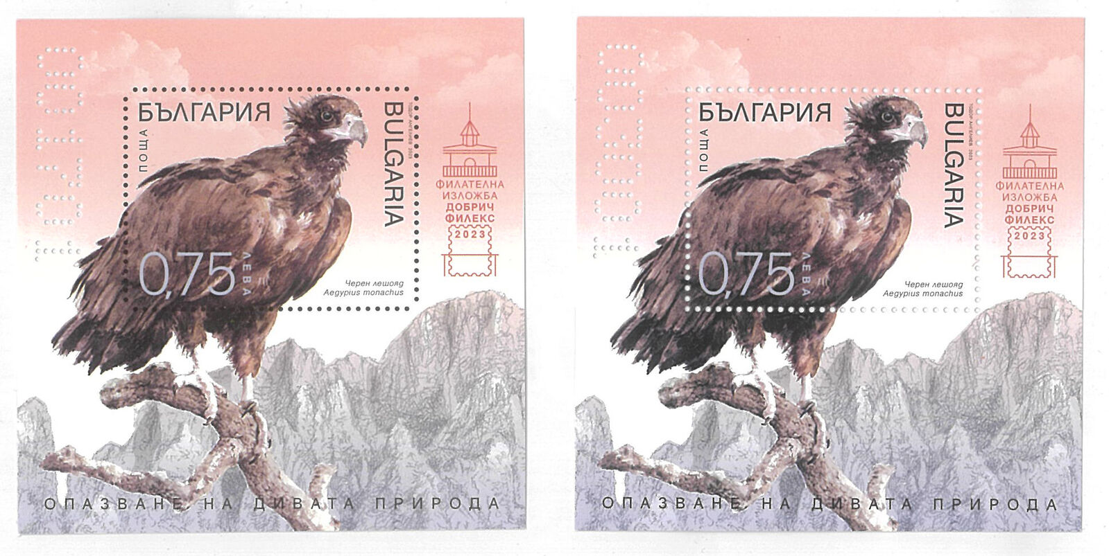 Bulgaria 2023 Black Vulture Perf & Imperf Set of 2 Mini Sheets MUH