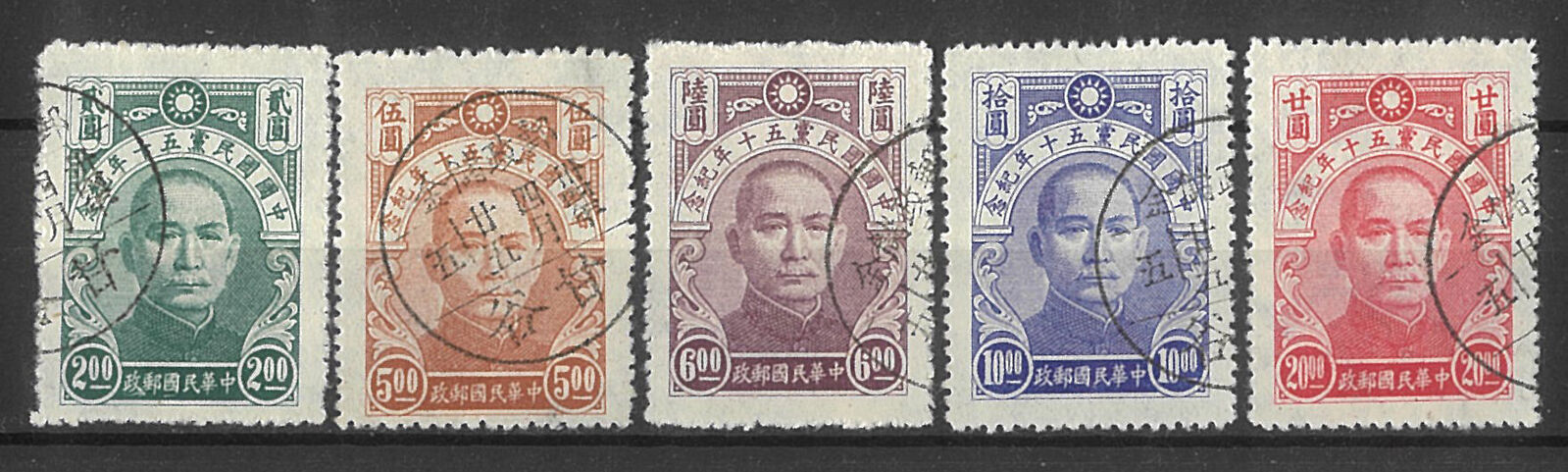China 1944 Kuomintang Anniversary Set of 5 Stamps Scott 578/82 Fine Used